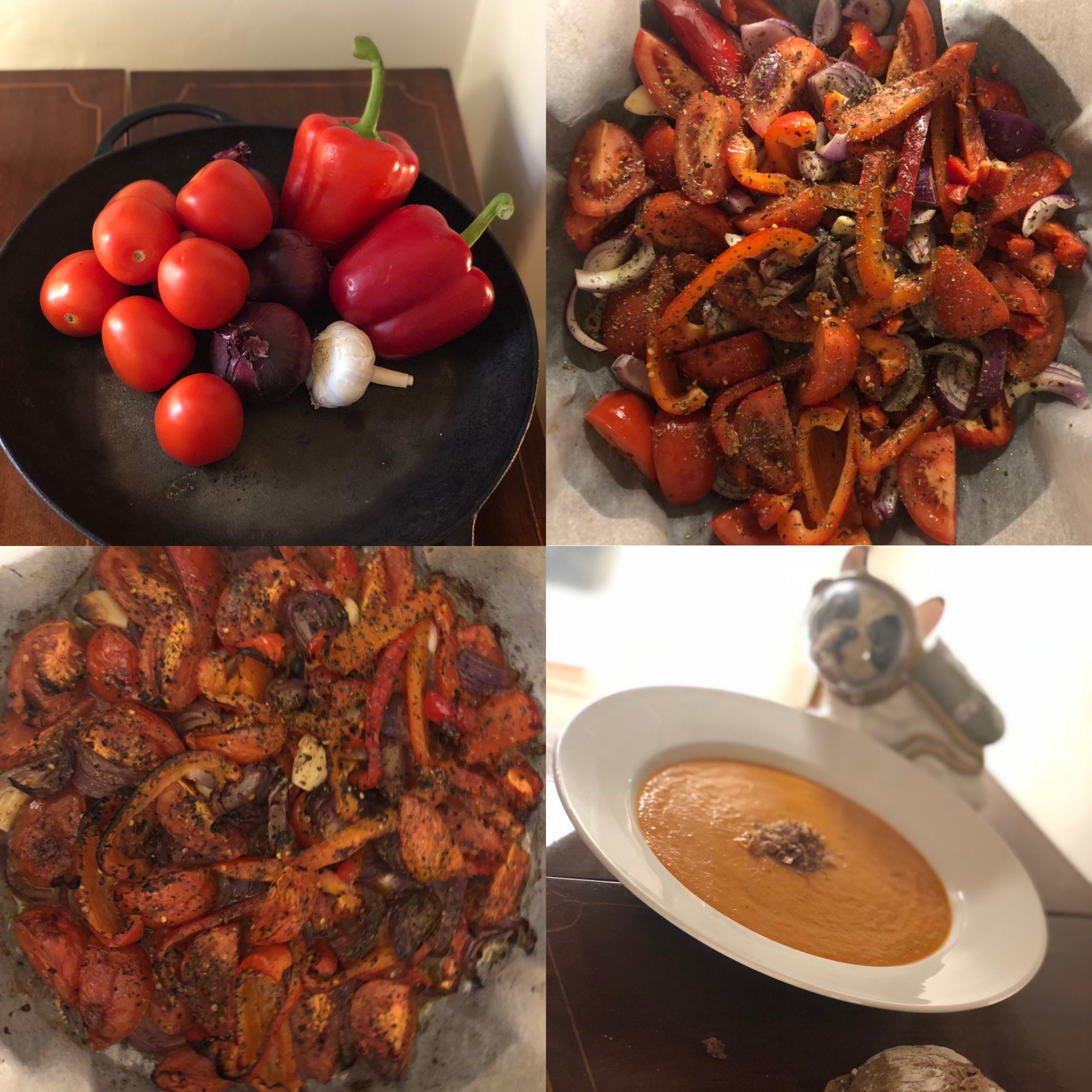 This soup is an absolute BANGER! It’s rich, velvety with the weight of garlic (you should be thinking that’s a lot of garlic… this is a good thing) and packs as much punch as you’d like with the addition of chilli flakes. It also looks so beautiful at every stage of preparation/cooking, a real symphony in red.