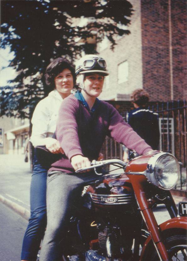 Mum on her twin-engine Triumph in Bermondsey in the 1960s.Mum on her twin-engine Triumph in Bermondsey in the 1960s.